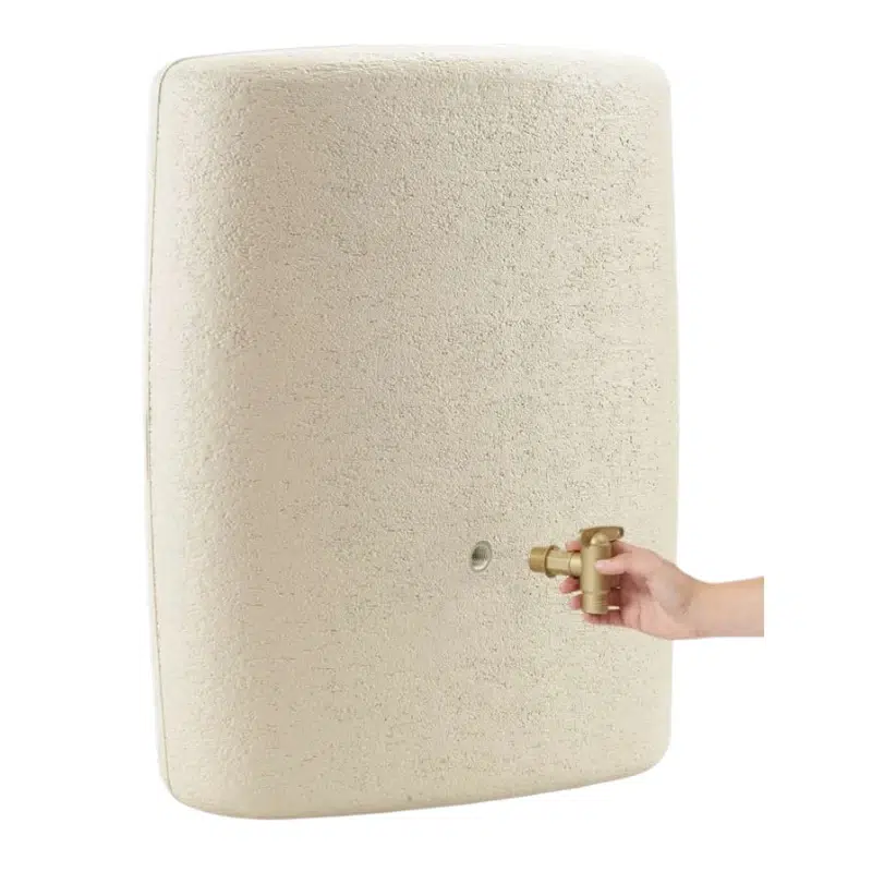 Największą zaletą, jaką oferuje ozdobny wąski pojemnik na deszczówkę, jest jego kompaktowa forma. Zbiornik został zaprojektowany tak, aby przylegał do ściany i zajmował minimum miejsca. Pomimo swojej smukłej konstrukcji oferuje aż 275 litrów pojemności, co pozwala realnie ograniczyć zużycie wody z sieci.