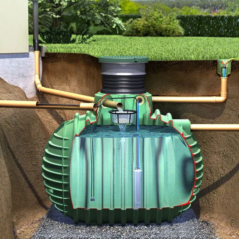 Podziemny zbiornik na deszczowkę Columbus w zestawie z pompą na deszczówkę